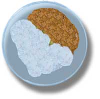 C'est un riz à la purée de lentilles.. Les femmes le préparent dès 5 heures du matin. On le mange tous les jours, 2 fois par jour vers 11h00 et vers 17h00. La viande étant peu accessible et non traditionnelle, il est généralement végétarien. Les protéines présentes dans les lentilles en font toutefois un plat équilibré. Des versions plus élaborées peuvent contenir toutes sortes de légumes préparés avec les épices traditionnels comme le montrent diverses photos glanées sur le net... |