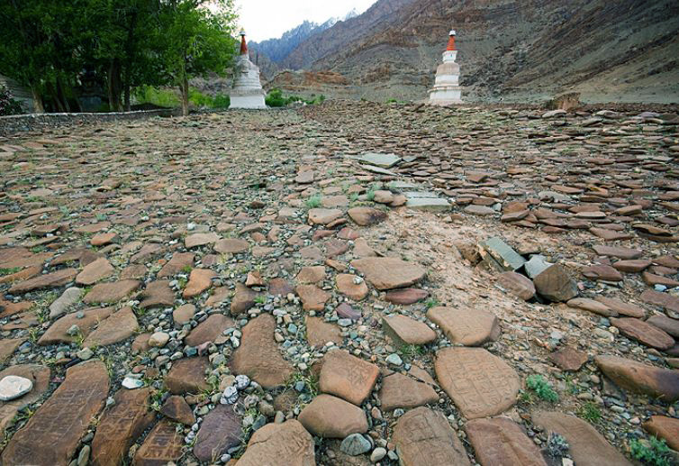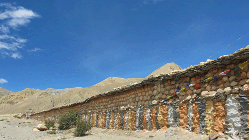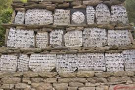 chemins des chortens, sont des murs de pierres entassées, gravées